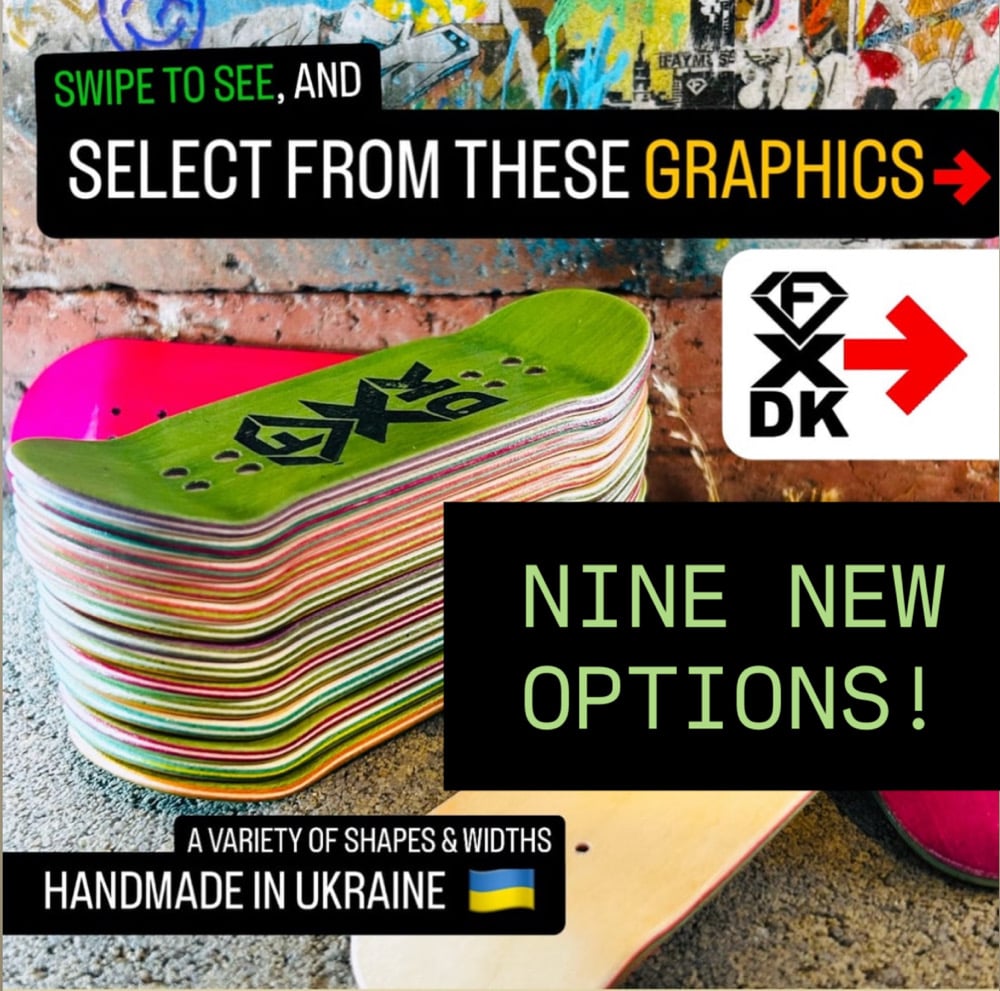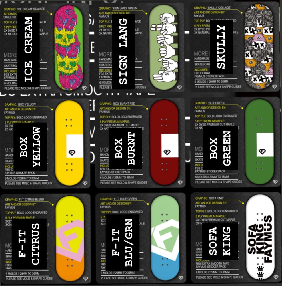 Handmade DK decks with FAYMUS high clarity 2.0 real wear graphics.